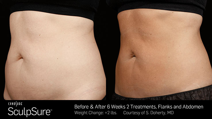 Have you been eating healthy and exercising regularly without seeing the results you desire? Warm Sculpting with Sculpsure treats problem areas such as love handles and excess fat on the abdomen that have become resistant to diet and exercise. This is a non-invasive fat reduction treatment that has the ability to remove up to 24% of treated fat cells1 in problem areas without surgery. Warm Sculpting with Sculpsure is a good option if you lead an overall healthy lifestyle, but have areas that are resistant to diet and exercise!