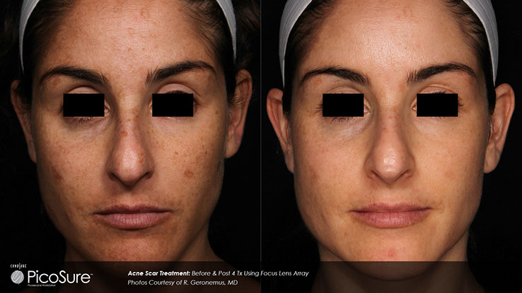 While it varies from patient to patient, multiple sessions may be needed for best results. While PicoSure laser scar removal is not considered painful to most, a cooling cream can be applied before treatment to reduce any discomfort. Laser acne and surgical scar reduction has few side effects, which typically include temporary redness and swelling. Most patients are able to resume their regular routines following treatment, no downtime required.